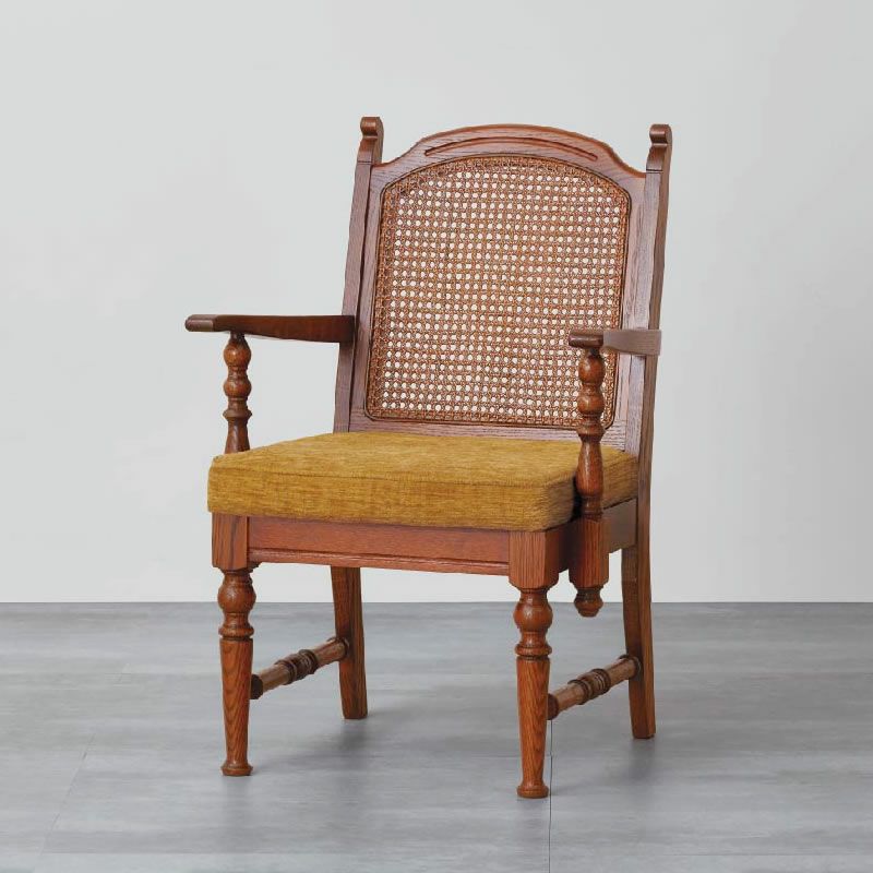 【素材】オーク材・背:籐張り・クッション:ウレタンフォーム・布張り