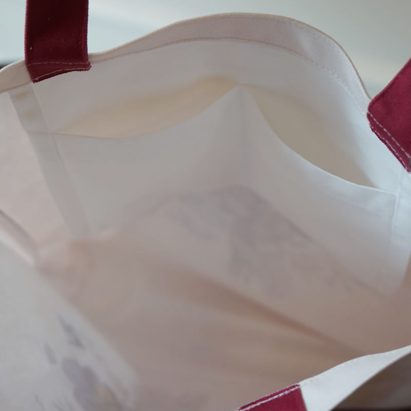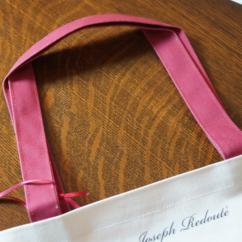 【コメント】花の宮廷画家、ピエール・ジョセフ・ルドゥーテが描いた、赤のラナンキュラス、紫と黄色のパンジーのブーケのトートバッグ(お買い物バッグ)です。マチもあり、お財布やカードを入れる、内部ポケットもついているので、便利です。お買い物が楽しくなります。