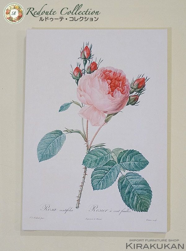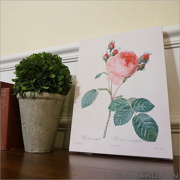 4. ルドゥーテ・キャンバス絵額 『美花選』A4サイズ【ロサ・ケンティフォリアG】フレーム 輸入雑貨 バラ雑貨