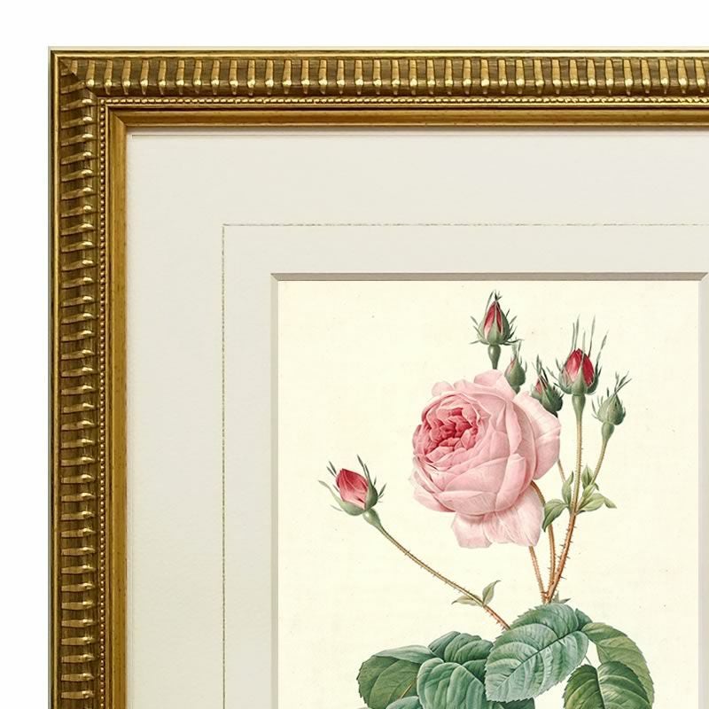 4. ルドゥーテ ローズ 絵額 複製画 『 バラ図譜 ロサ・ケンティフォリア・ブラータ 』縮小版 ゴールドフレーム RS-I
