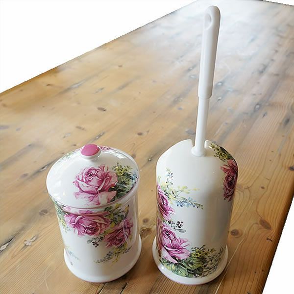 輸入雑貨・英国雑貨|ロイヤルアーデン シリーズ ロイヤルアーデン サニタリーポット&トイレブラシ スタンドのセット ローズガーデン(0260128-0260129)