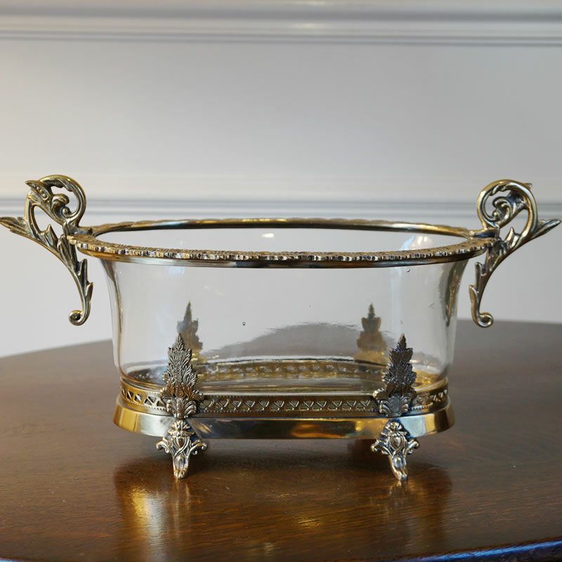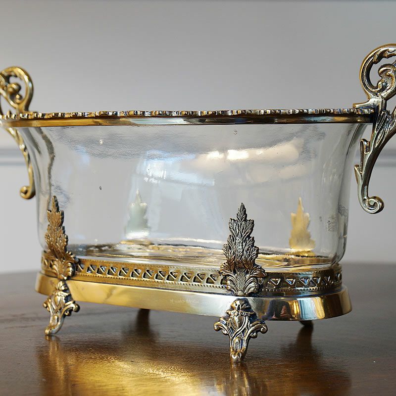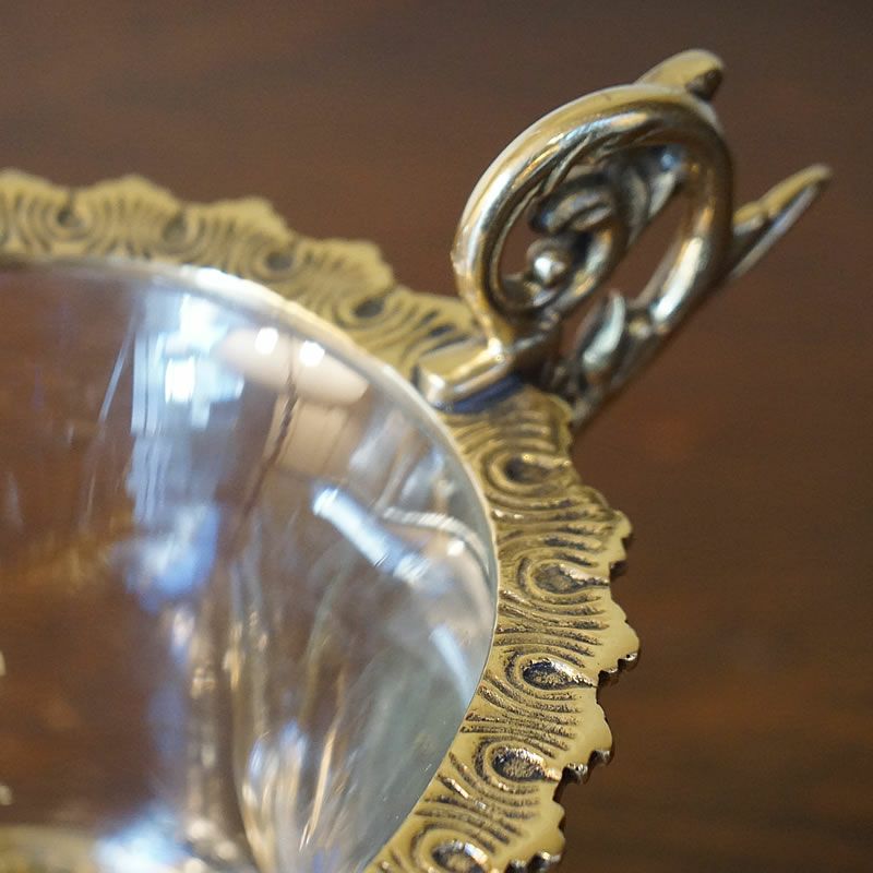 【コメント】テーブルの上でフルーツを盛ったり、花を飾る花瓶にしたりと便利なガラス置物です。エレガントで重厚感のある真鍮とガラスを使用し、クラシックスタイルのデザインの置物はプレゼントにも喜ばれます。