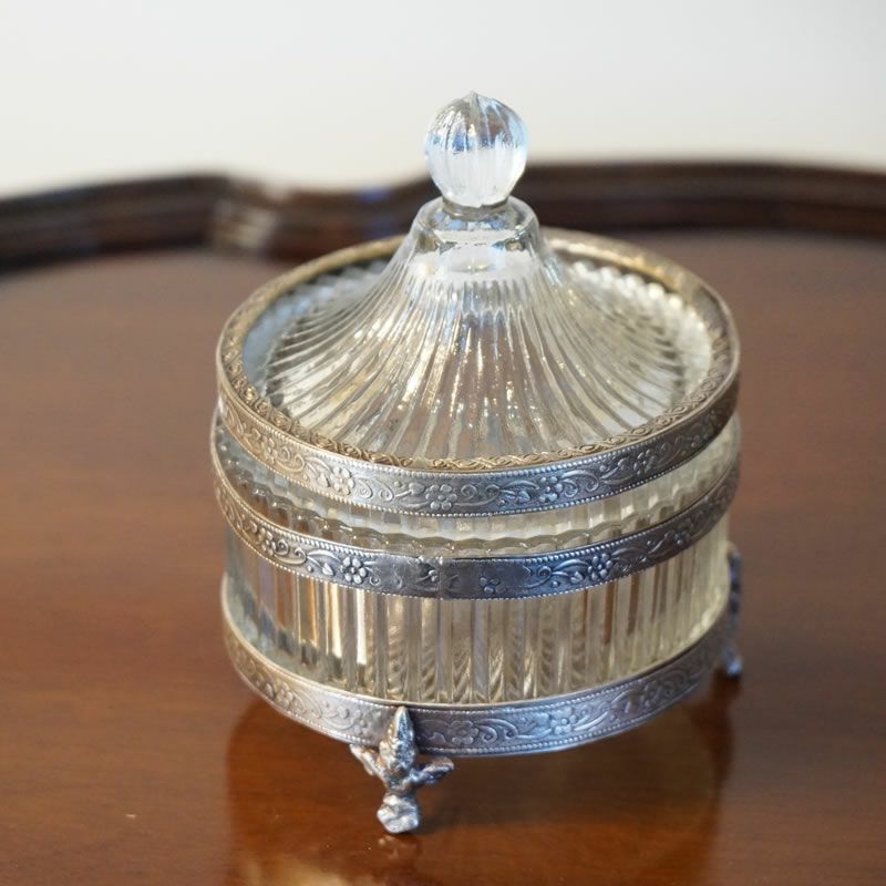 4. ガラスボックス 丸 シルバー 小物入れ アンティーク 雑貨 オブジェ 輸入雑貨 インテリア 雑貨