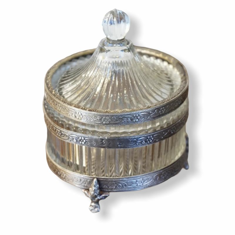 5. ガラスボックス 丸 シルバー 小物入れ アンティーク 雑貨 オブジェ 輸入雑貨 インテリア 雑貨