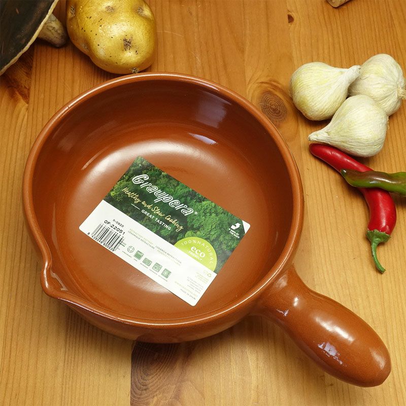 生活雑貨で暮らしを豊かに楽しく!| スペイン グラウペラ社製 片手浅鍋 アヒージョ鍋 20cm テラコッタ陶器 カスエラ