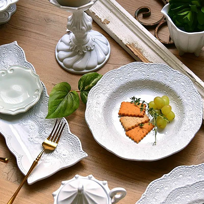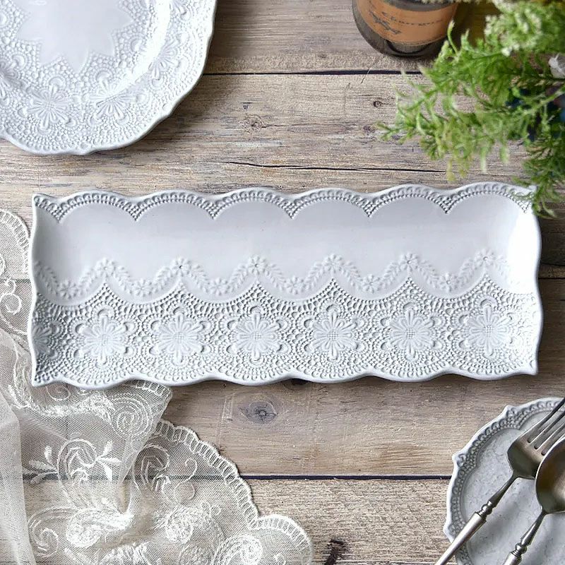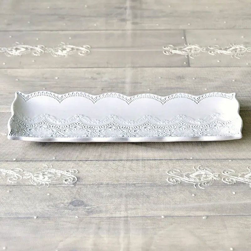 イタリア「ラ・セラミカ」繊細なレース柄と優しいカラーの「レースシリーズ」| ラ セラミカ メルレット ホワイト レース レクタングルプレート プレート皿 イタリア製 陶器製 皿 プレート