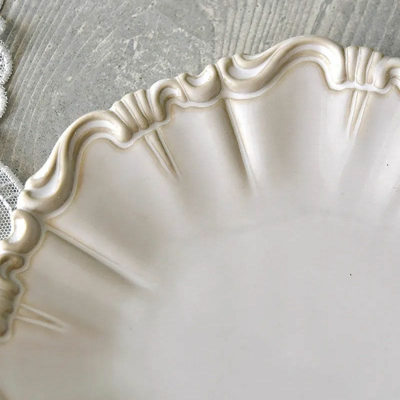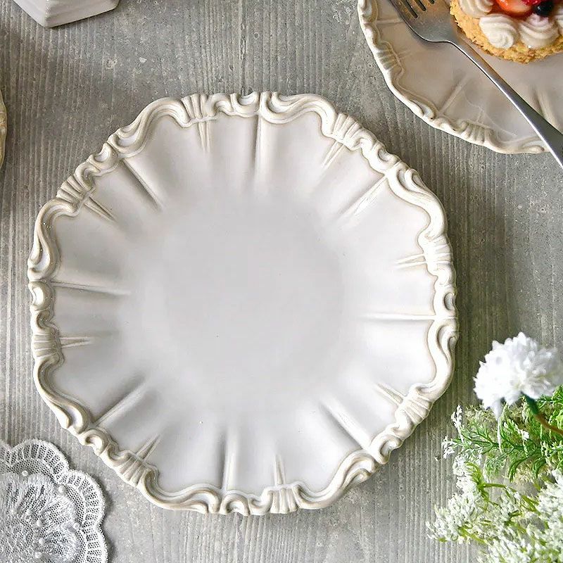 【コメント】シャビーシックな仕上げのお洒落な白い陶器の食器