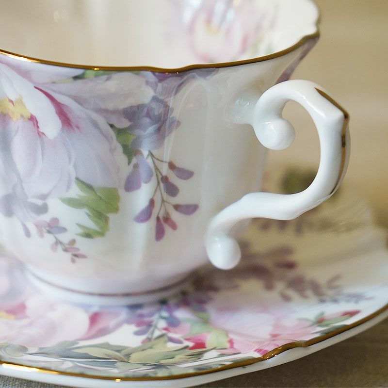 【商品名】ロイヤルアーデン ボーンチャイナ カップ&ソーサー ローズ&フジ 磁器製 英国風の陶器 テーブルウェア