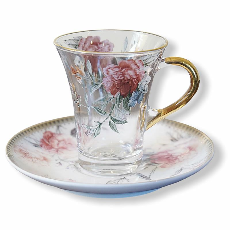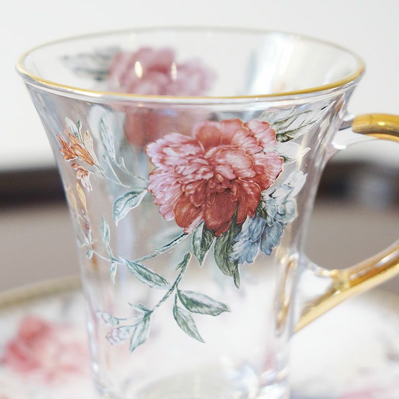 【コメント】英国クラシックスタイルのカップ&ソーサーです。クリアのガラスを使用していますので、ティーやハーブの美しい色が楽しめますね。みなさんでワイワイ楽しめるカップ&ソーサーです。数量に限りがあります。テーブルの上が楽しくなります。