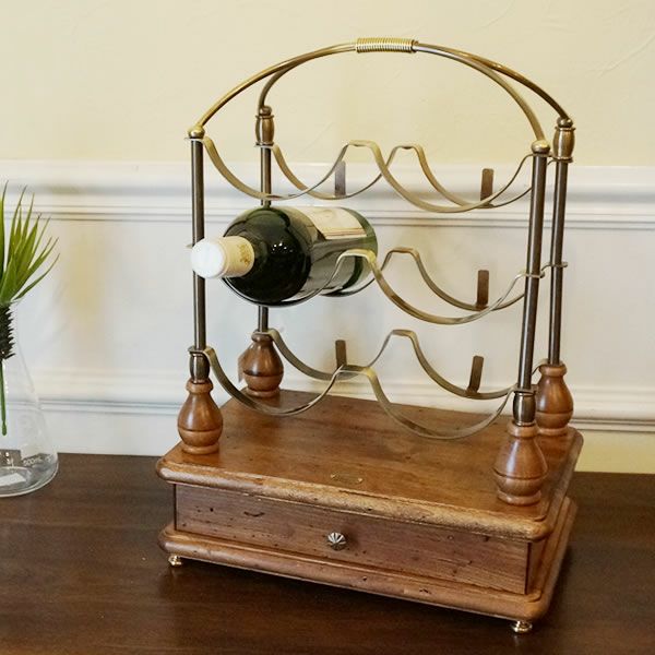 【コメント】風格のある古木の台座に上品な真鍮の輝きが素敵です。ワイングッズを収納しておける小引き出しも付いていて便利です。貴重とされる本物の虫食い古木を使用した機能的なワインホルダーです。200年~300年を経たポプラの古木を使用しています。主に建物の柱や梁に使われていた優れた原料を厳選し、熟練した木工職人の技術により素材を生かして製品化されています。