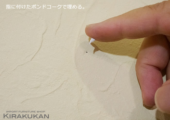 直接・・穴に塗ってもよいのですが、先端が硬いので壁紙を傷つけてしまう可能性があるので、指先に一旦取って穴に塗ったほうが間違いないと思います。