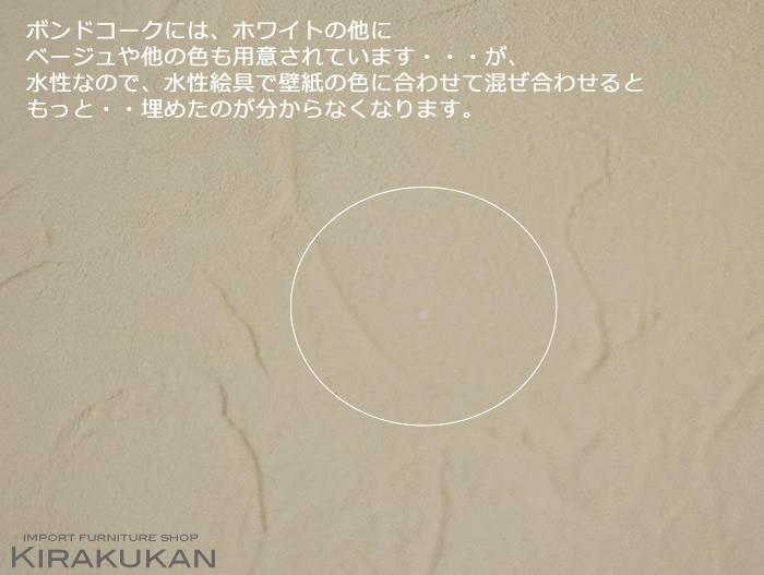 壁紙の色がホワイトではなく色が付いていて、ボンドコークが目立ってしまうケースがございます。そんな時は、壁紙の色に合わせて絵具で着色してください。