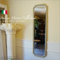白い壁に 猫のいたずらで壁紙が剥がれてしまったので それを隠すために壁掛けミラーを購入しました。 イタリア製のキャビネットの並びなので、くどくならない様に 落ち着いたデザインの物を選びました。 期待通りの上品な鏡で、雰囲気もピッタリ! 写真で見るよりも素敵ですね。