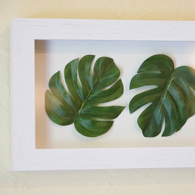 リーフ額は、お部屋を楽しく見る目を癒やしてくれます| モンステラ2&アブラヤシ 額 2枚セット(ブラウン)リーフフレーム パネル 造花 観葉植物 おしゃれ 絵画